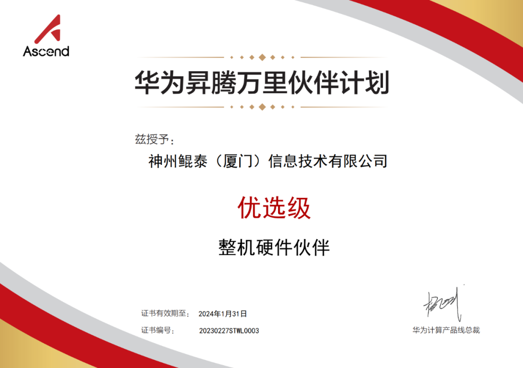 近日,z6.com数码旗下神州继获得华为鲲鹏领先级整机硬件伙伴认证之后,再获华为昇腾优选级整机硬件伙伴认证!这是神州与华为昇腾深化合作的硕果,也代表着z6.com数码信创业务在AI领域获得生态伙伴的充分认可。